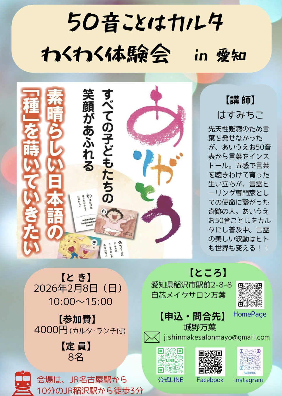 自分の内なる言葉が自分の人生を創造する!いきいき生きるヒントをお届けするメルマガ【はすみちこ の部屋】へようこそ。メルマガをご登録してくださった方へ【ぐっすり眠れるはすみちこ オリジナルヒーリングソング】をプレゼント!あいうえお50音ことはワークショップ・講演会などのイベント情報やオンライン情報をリアルタイムでお届けします。